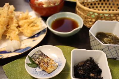 JR別府駅の近くで有名な『とよ常』です。大分名物「とり天定食」「天丼」「天ぷら定食」をみんなで食べました。定食にはご飯みそ汁のほかに、付合せとしてもずく、ひじき、脂ののった塩サバなどが付いてきましたが、全部うまかったです。