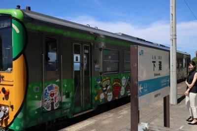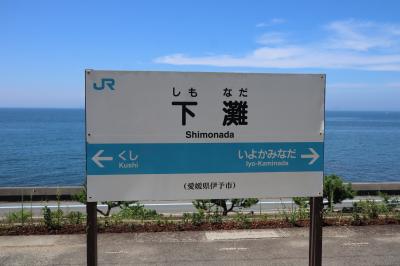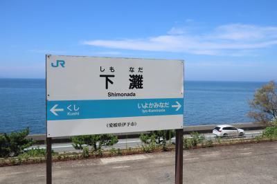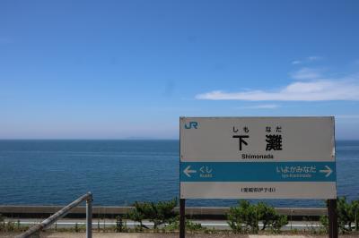 伊予大洲から各駅停車で40分ちょっとで下灘に到着、どちらか言えば松山からの方が近いです。この駅は昔から数々の映画の舞台、フーテンの寅さんもここに来ました。今は、カップルのデートコースになっています。皆さん海をバックに写真を撮りまくっていました。