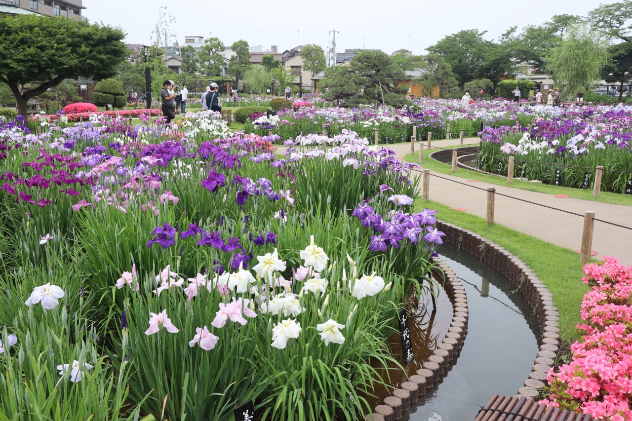 東京都葛飾区の堀切菖蒲園では花菖蒲が6月上旬満開になります。江戸時代からの名所には200種6000株の花菖蒲が植えられています。入場無料が不思議なほど園内はきれいに整備され、花々は手入れが行き届いていて見る人を癒してくれます。