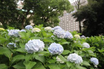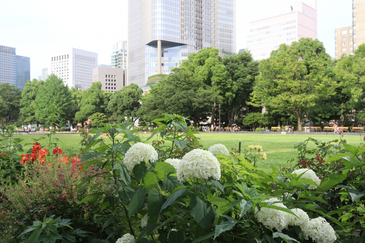 霞が関と丸の内の間の一等地に位置する日比谷公園は16万㎡あります。移動自粛制限が解除された最初の週末、天気も良く日比谷公園は人だらけ。6月はあじさい、ユリ、バラなどが咲いていました。花々を見ながら鶴の噴水を眺めていると癒され、外出自粛疲れしたストレスが多少軽減されました。