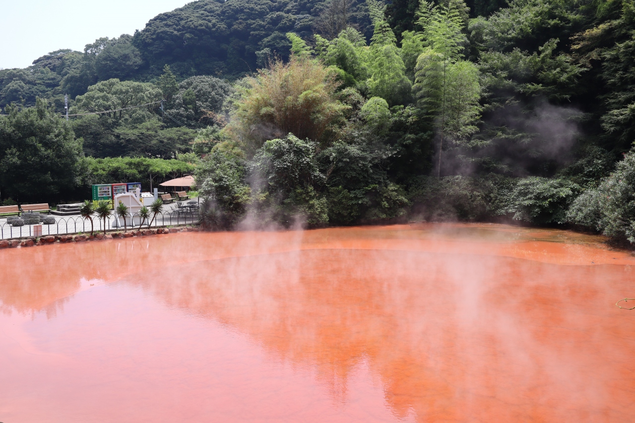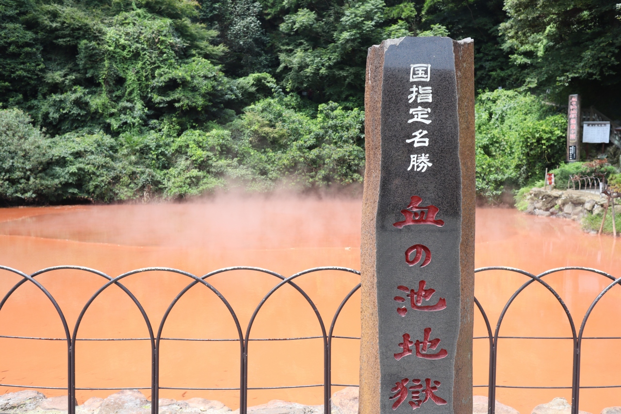 日本一の温泉量で有名な別府は、鉄輪(かんなわ)と少し離れた亀川という場所に7つの熱湯が湧き出す通称「地獄」と呼ばれる場所があります。亀の井バス定期観光で別府亀川の「血の池地獄」に行きました。その名のとおり赤く染まる巨大な池はきっと印象に残ると思います。