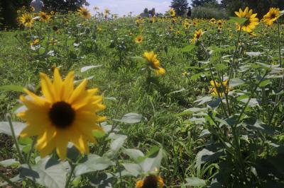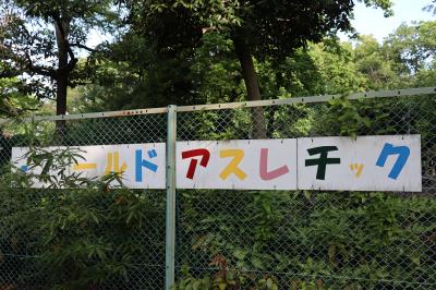 園内では朝から多くの地元の方がウォーキングをしています。施設としてはプール、フィールドアスレチック、テニスコート、それに弓道場や相撲場まであります。