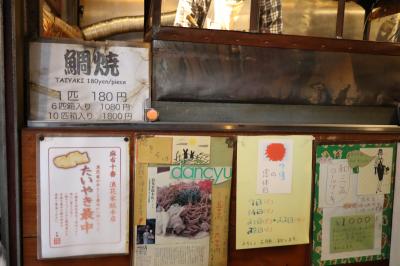 鯛焼き180円。店内では他にお汁粉、かき氷、あんみつもいただけます。店頭にやきそばのパックがあればテイクアウトできます。- 旅行時期