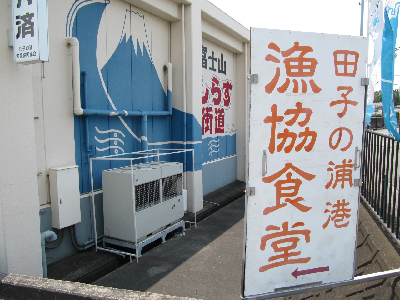 この辺りは、富士山しらす街道として有名です。「田子の浦港漁協食堂」でネット検索すると「漁協食堂からのお知らせ」にて生しらす漁の状況が確認できます。この日は生しらすと釜揚げしらすが半分ずつのハーフ丼を注文。ごはん少なめで750円でとても美味しかったです。冷凍といえども鮮度抜群の生しらすを水揚げ後に急速冷凍しているので品質が安定していて獲れたてと何ら変わらない鮮度と感じました。屋根はあるが壁がない漁港食堂は涼しい風が吹き何とものどかで良かったです。営業時間は10時30分より。