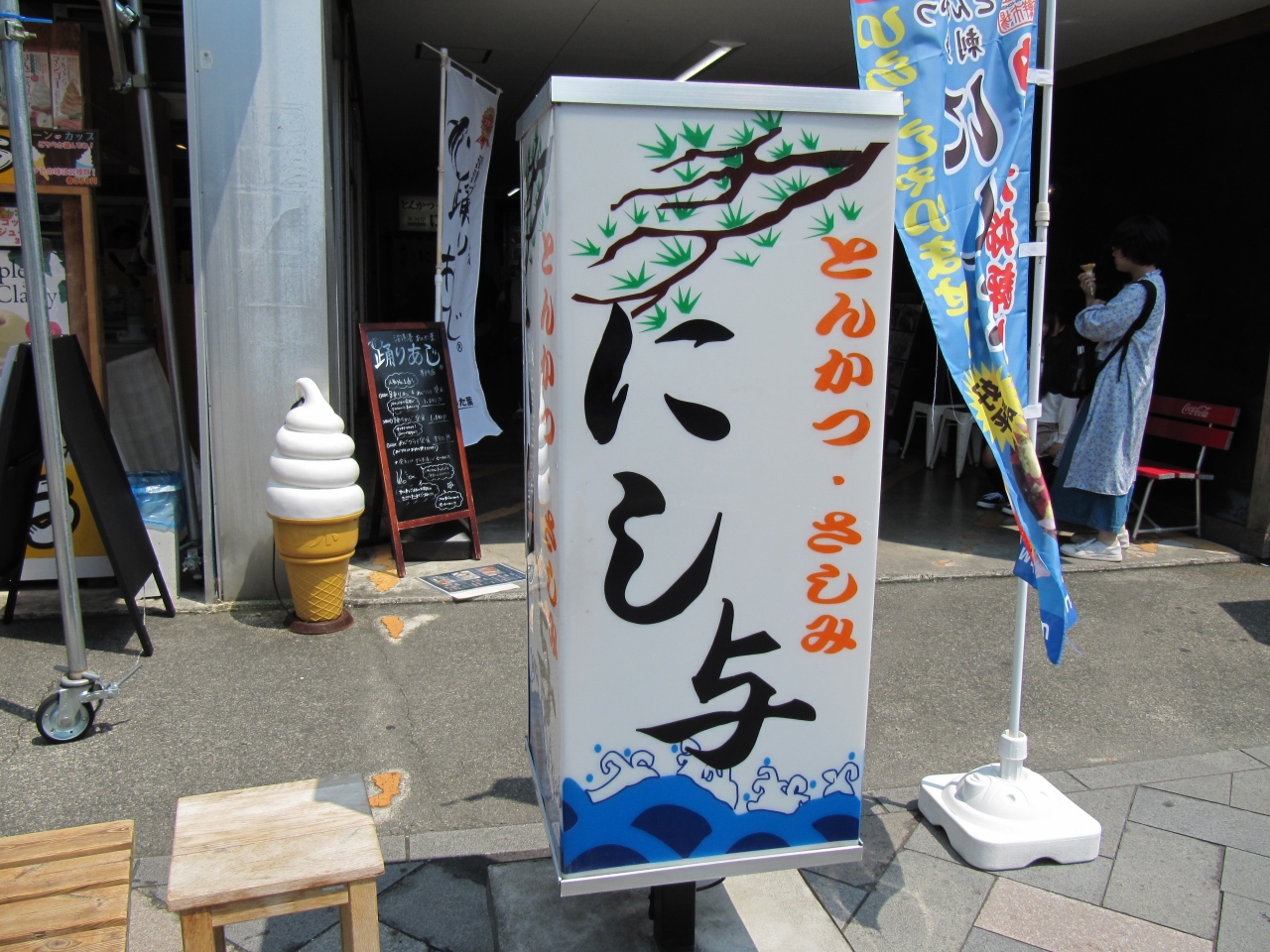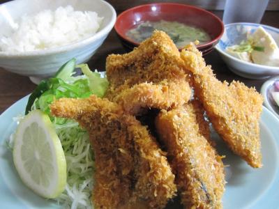 アジフライ定食は2019年7月現在で税込み1200円。厚みのあるフワフワなアジが5枚。コスパ強烈です。注文取りも配膳も支払いも名前で管理します。すなわち、次は何々さん、などとオバちゃんたちが言っているのです。スタツフは7人(内、若い子が1人いました)ソースの減りは敏感に補充。「ごはんは半ライスまでサービスよ」とそっと語りかけてくれるオバちゃん。お会計のとき「ごはんは足りたかい」と聞いてくるオバちゃん。行列に納得。- 旅行時期