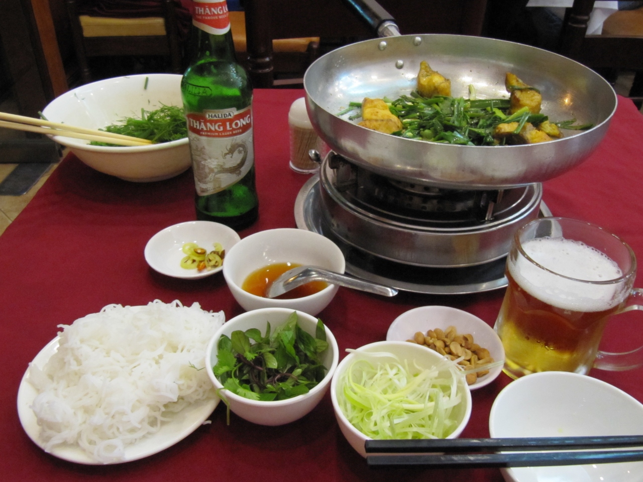 チャーカーを炒めたら、米のブンと付合せ野菜をいっぱい入れます。タンロンビールが進みます。なのに申し訳ないくらいお安いのです。- 旅行時期