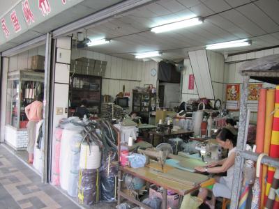 本来は、台南料理で有名な「度小月本店」の開店待ちでぷらぷらしていたのですが、その数軒か隣に工房むき出しの帆布店があり、日本のおばちゃんたち数人が寄ってたかって今にも買う雰囲気で交渉しているのを見てしまいました!