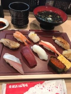金沢駅の改札を出て、同じフロアの「金沢百番街あんと」の奥に幾つか食事処があり午前11時に開店です。名古屋から米原を経由して金沢に10時50分くらいに着きました。ここは3回目です。カウンターのみ14席で、いつも長蛇の列に並んで待っていましたが、この日は開店と同時に着席できました。のどぐろを含む寿司10貫と青さ汁の何とかセットを注文。板さんから「これは富山の~」とか簡単な説明があります。2,000円ちょいしますが、やはり金沢で食う寿司は、なぜかとても美味しいのでした。