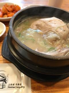 平昌オリンピック開催中にソウルへ行って立ち寄りました。韓国人なら誰でも知っている日本のガイドブックにも載っている超有名です。景福宮の近く(景福宮駅の2番口から出て路地を少し入る)にあり、靴を脱いで座布団に座ります。湯気の立った鍋には箸でほろほろにとろける鶏肉・高麗人参・もち米・ニンニク・銀杏・ナツメなどがありました。体が温まり満腹になりました。時間帯を少しずらすと待ち時間が少ないです。究極の参鶏湯と思います。