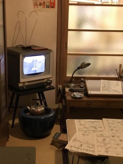 トキワ荘マンガミュージアムは東京都豊島区南長崎三丁目の花咲公園内に再現されています。まず一階入口で入場料500円、靴は靴箱へ、靴下ない場合はナイロン製靴下を借りることになります。階段で二階に上がります。最初に共同トイレ、一番最初の部屋に手塚治虫や藤子不二雄が生活していた部屋があり、順に赤塚不二夫が居た部屋や共同の炊事場などが続きます。二階突き当りのエレベーターで一階に戻ります。二階は撮影禁止のマークが無い場所で写真が撮れますが一階は撮影は全面禁止となっていました。車で行きましたがすぐ近くにコインパーキング40分まで200円があって便利でした。