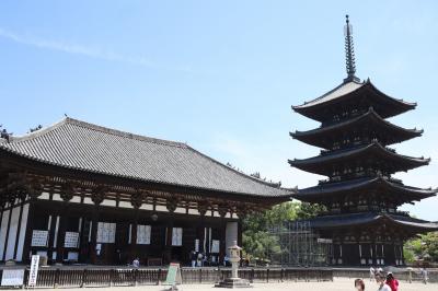 奈良の興福寺に行くにはJR奈良駅から三条通りをなだらかに上って行きます。近鉄奈良駅からの方がもっと近いです。興福寺は東大寺や春日大社と同様に奈良観光ではテッパンの観光スポット。大化の改新で有名な藤原鎌足が釈迦三尊像を造立し、それを妻の鏡大王が山階寺に安置したのが始まりと言われています。境内には、五重塔、東金堂、国宝館など見ごたえのある建造物が建っているので、ゆっくりと見てまわるのが良いと思います。但し、猛暑の中で日差しをさえぎるものがありません。