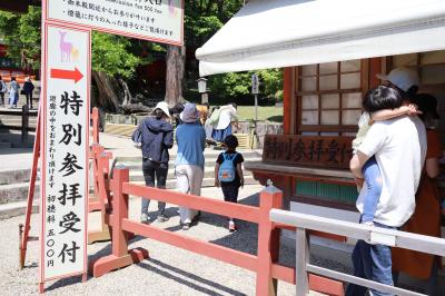 JR奈良駅から三条通りを歩き興福寺に立ち寄った後、さらに三条通りを進むと春日大社に続く一の鳥居があります。そこから本殿まで実は結構な距離を歩かされます。前回は奈良の大仏から二月堂・三月堂を経由して春日大社に寄りましたが、いずれも徒歩で往復すると結構疲れます。今回ゴールデンウィークに行きましたが小さなお子さん達がこの長い距離を頑張って歩いていたことに感心しました。春日大社は全国あまたの春日神社の総本社で1300年の歴史があります。神の御加護がありますように。