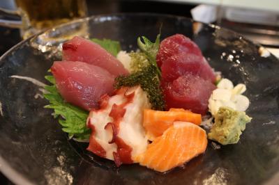 宮古島中心部の平良(ひらら)地区にある居酒屋の中山(ちゅうざん)に夕方訪問しました。まず、付け出しの海ブドウと刺身の盛り合わせの旨さに心が打たれました。そして、メニューにイチオシ人気と書かれたカツオの腹皮ふわふわ揚げもオリオンビールにとても合いました。