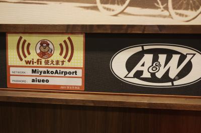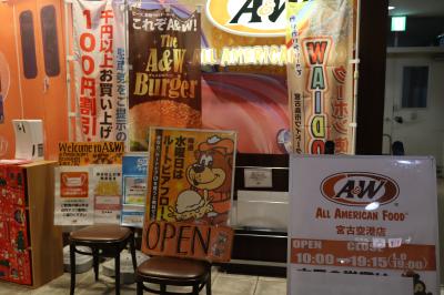 宮古空港発羽田行19時50分発の便に搭乗する前に2階出発ロビー階の一番奥にあるA&Wに寄りフライトまでの時間調整。この時間、他のショップではすでに営業が終了しているところもありました。