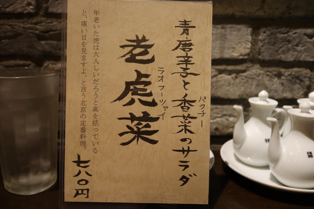 この日は定番の四川担々麺、パクチーサラダ、ネギワンタンなどをいただきました。親切にもメニュー表にはお一人様用Sサイズが用意されています。お一人で2皿以上の注文という条件がありますが、美味しいものを少しずつという時にこれがとても嬉しいです。- 旅行時期