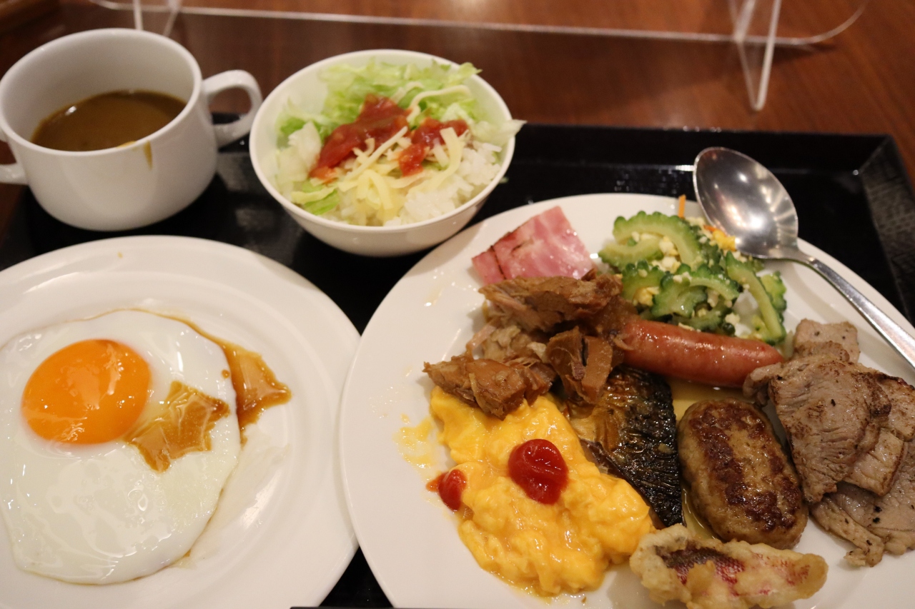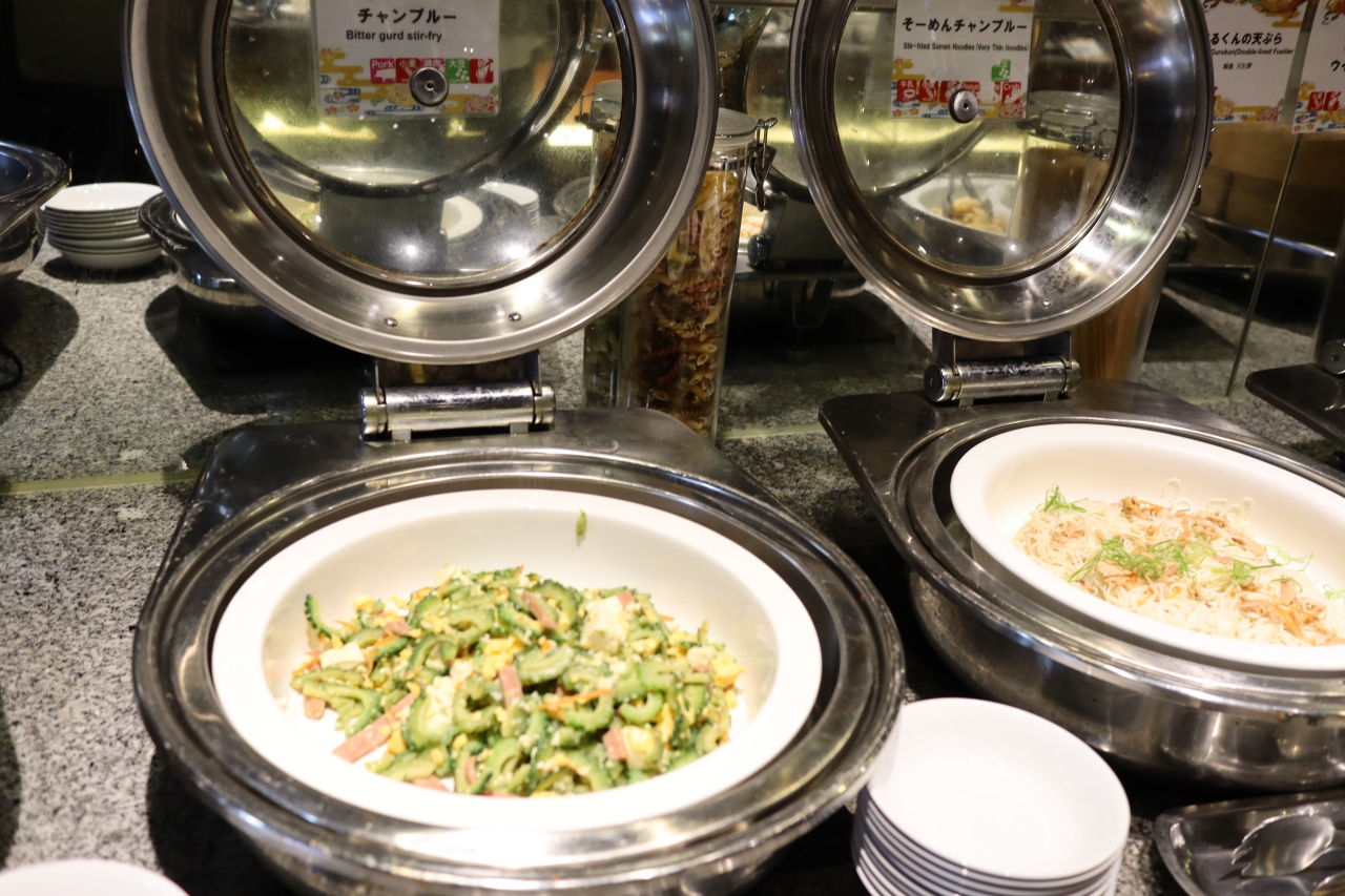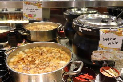 沖縄県庁舎の隣で国際通り入口に位置するホテルロコアナハに宿泊し、翌日の朝食で2階のアレッタに行きました。朝6時30分より営業していますのでオープンに合わせて行くとすでに五人が椅子に座って順番待ちでした。アレッタは朝食がビュッフェバイキング形式で沖縄那覇においては高評価のブレックファーストです。