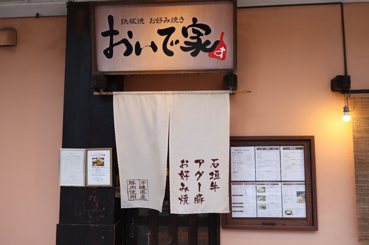12月25日の夕方、那覇久茂地の路地裏にポツンと立つ普通のアパートの一階に白いのれんが掛かった小さな間口のお好み焼き屋がありました、「おいで家」です。入口の間口にしては想像できないくらい店内は広々していました。
