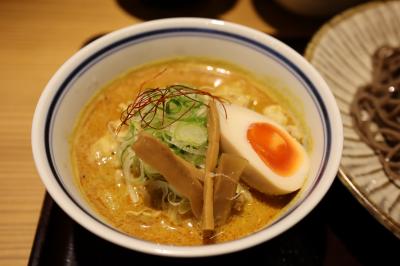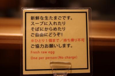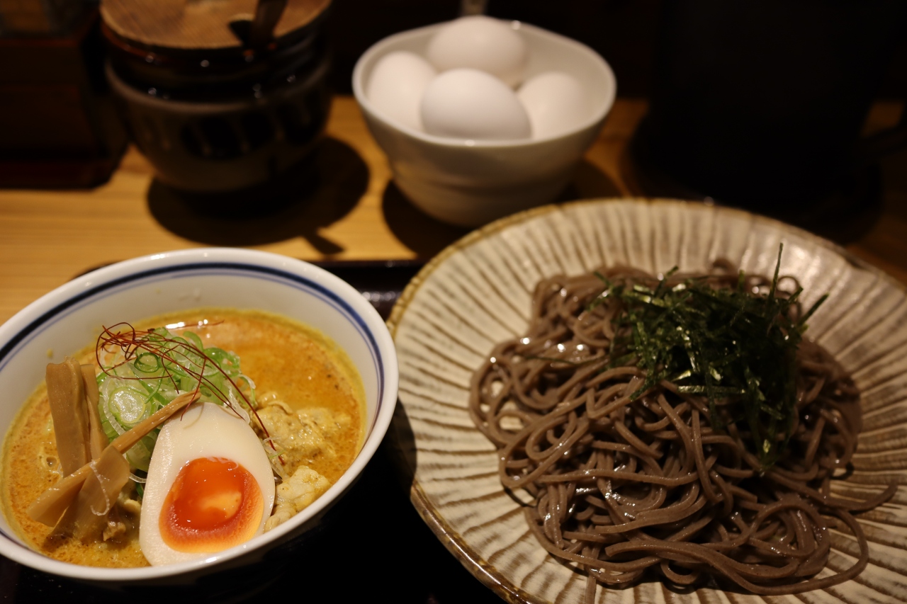 この日はカレーつけ蕎麦をいただきましたが、味も量的にもちょうど満足できました。テーブルのうえに生たまごが盛られた竹カゴが置かれていて、ご自由にとありましたので最後に味変として一ついただきました。