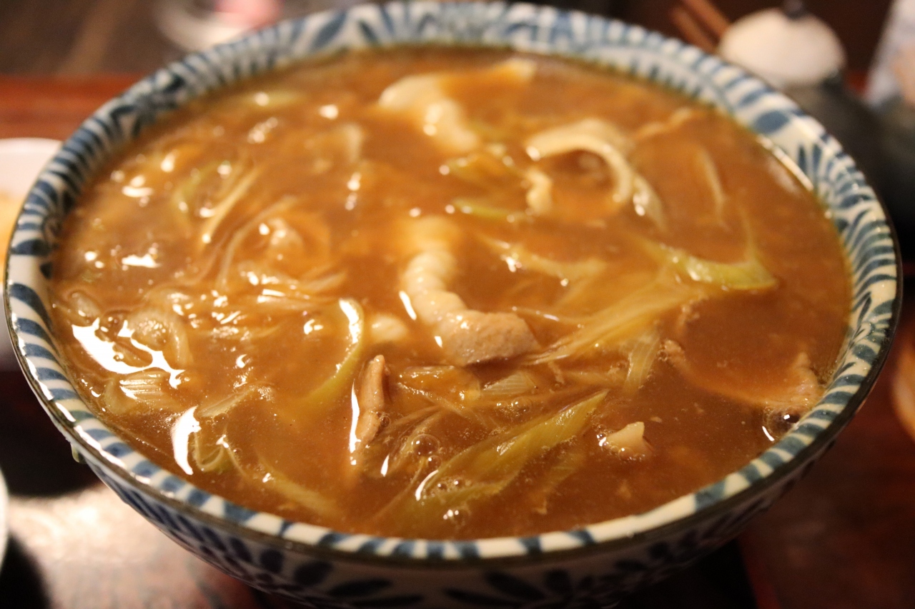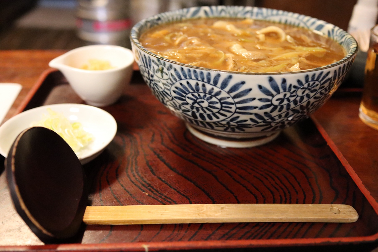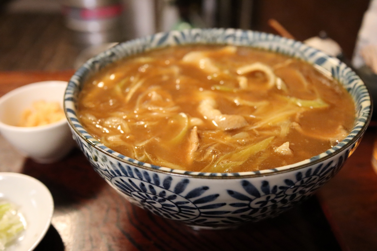 カレー南蛮そばを注文しました。並盛・中盛・大盛・特盛のどれにするか聞かれます。おそばの量のことで、どれでも値段は同じとのこと。もりそばであれば量の大小も分からない訳ではないですが、一杯の丼で提供される熱のカレー南蛮そばも選べることにビックリ。大盛でお願いしましたがずっしり食べ応えあります。お値段750円に消費税でした。