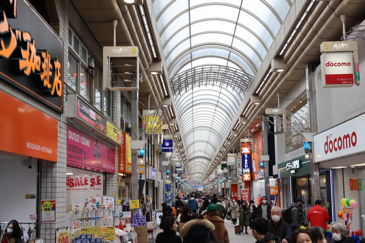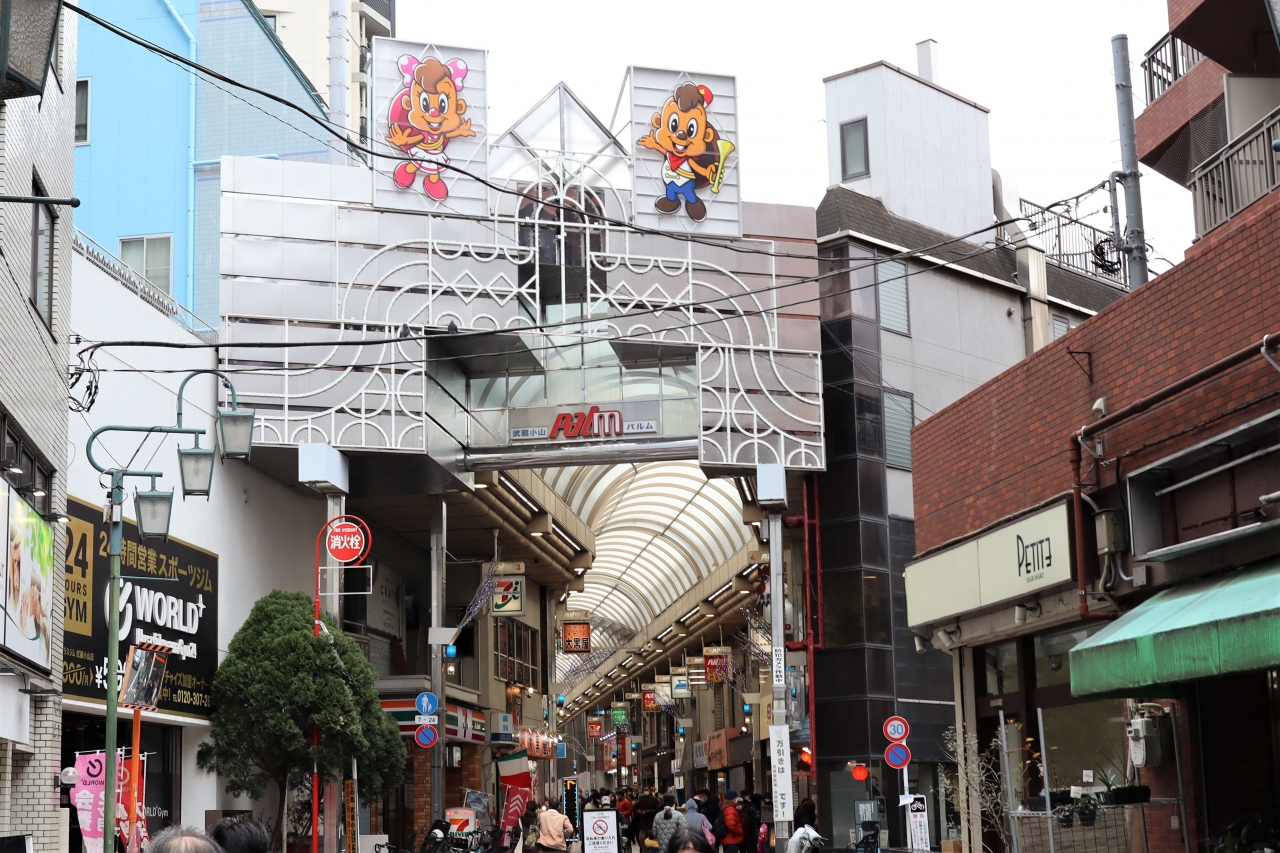 東京で最も長いアーケード商店街でその距離800m。通称パルムは東急目黒線の武蔵小山駅からすぐで中原街道まで続き、中原街道を渡ったところにある戸越銀座商店街へと続いています。自転車の乗り入れはできません。降りて押さなければなりません。印象的なのは端っこにあるいつも行列のできる焼き鳥屋さんです。