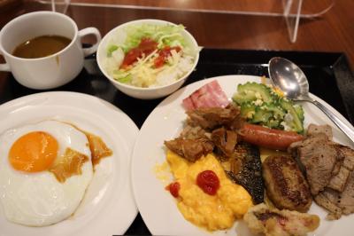 那覇市内で宿泊するとき、特に朝食をいただく時間があるときは宿泊したくなります。国際通りの入口で沖縄県庁舎前という好立地にあるホテルロコアナハ。朝食会場2階のアレッタでの朝6時30分もかなりお楽しみです。一階にコンビニファミマがあるので何かと便利です。エレベーター使用時はルームカードを当てます。