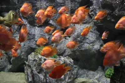 水族館といっても美ら海のそれとは規模が違い、水槽で泳ぐ魚や幻想的なライトに浮かぶクラゲが印象に残るかわいい水族館です。しかしなぜかナマケモノや小フクロウにカメレオンとペンギンなどの動物もいたり、触ることができるコーナーもありファミリーにとっては楽しめるのではないかと思われます。難点はパンフレットがないので何の魚か分からないこと。- 旅行時期