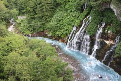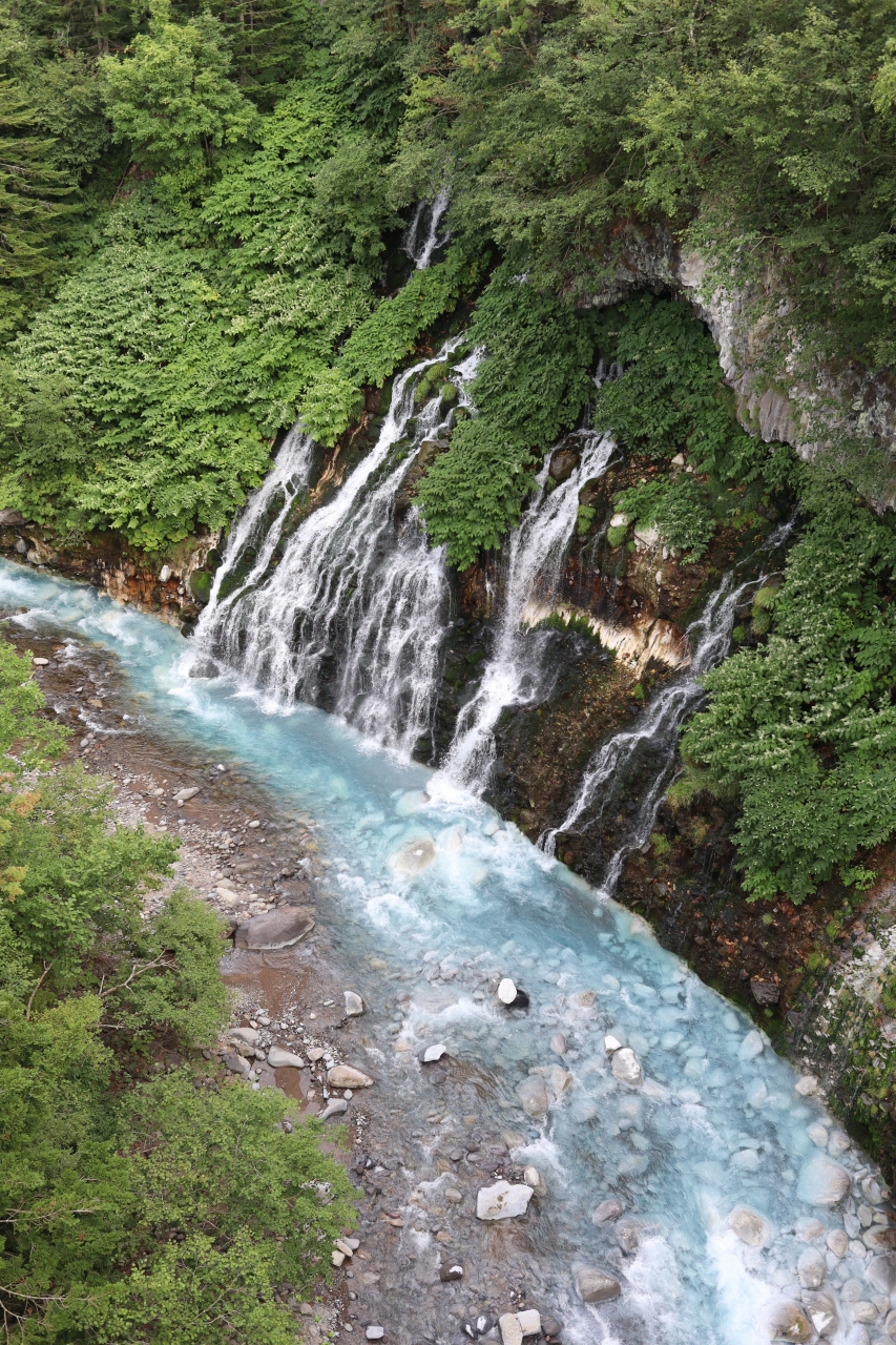 自然岩の間から染み出た地下水が勢いよく渓流に流れ落ち、美瑛川はコバルトブルーにきらめいています。美瑛白金温泉街の観光名所です。日本でも珍しい「潜流爆(せんりゅうばく)」に分類される滝で、通称「ブルーリバー」と呼ばれる橋の上からの眺めがおすすめです。- 旅行時期