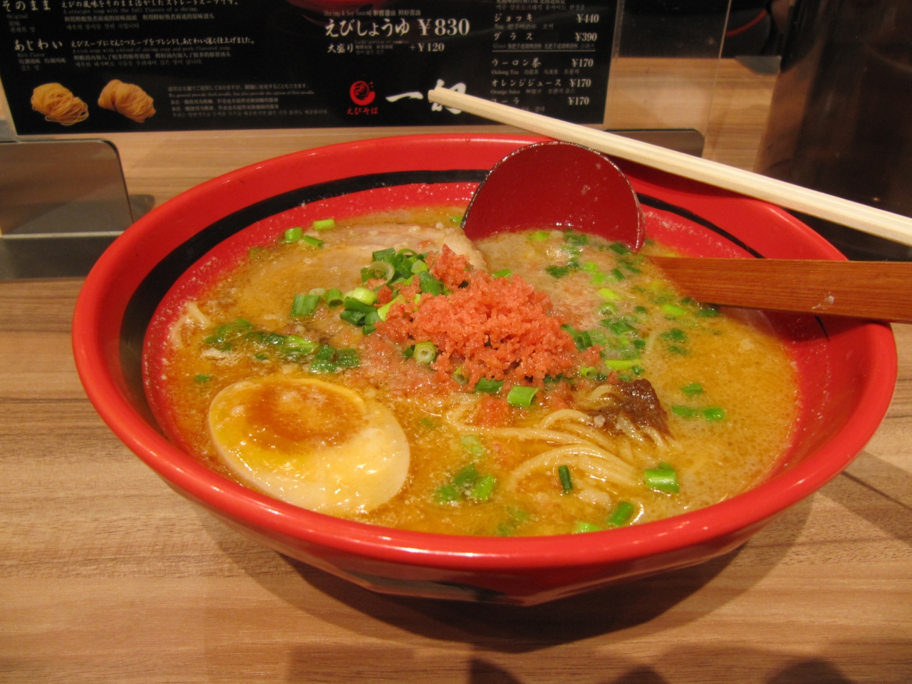 北海道新千歳空港の「えびそば一幻」は、出発ロビーのひとつ上階のグルメフロアにあります。北海道ラーメン道場の一番入口に位置し、なぜかいつもここだけ普通にすごい行列になっているので「美味しいのかな、一度食べてみたいなぁ」と思いつつ、これまで断念続き。