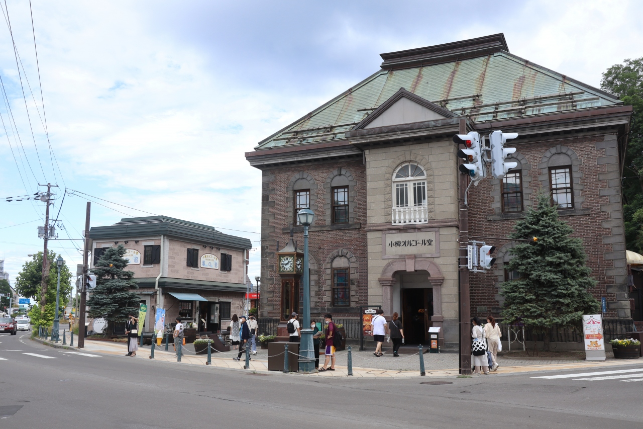 ホテルトリフィート小樽運河や北のウォール街と言われる旧三井銀行小樽支店(現 小樽芸術村)など有名な建築物の前を通って北一硝子の方に向かい、ルタオ本店とオルゴール堂の間にある交差点が通称「メルヘン交差点」です。
