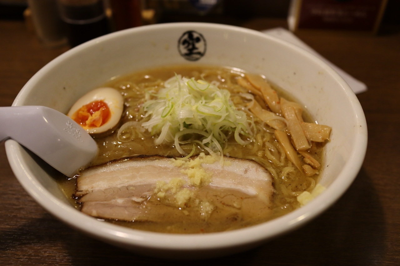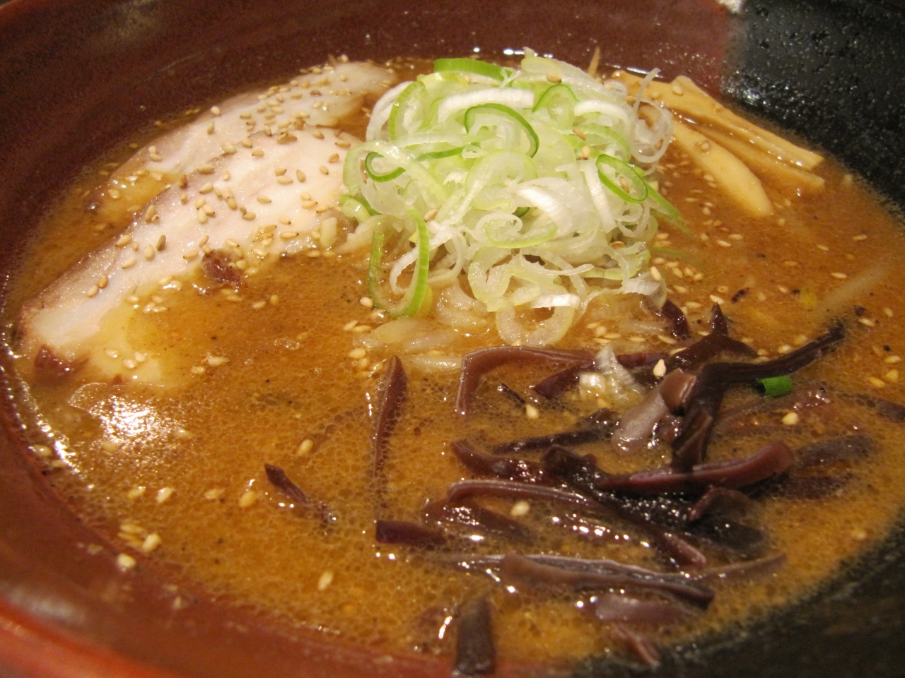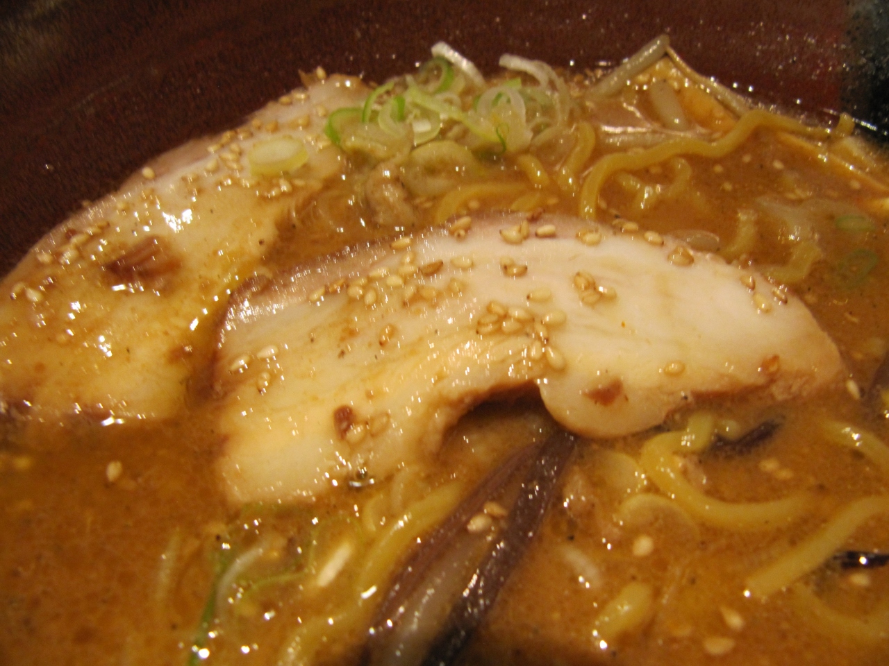 「今や札幌ラーメンを代表する一店。コクとキレのある味わい深い一杯」というキャッチフレーズのとおり、濃いめの味噌で玉子ちぢれ麺にトロトロチャーシューがのっています。