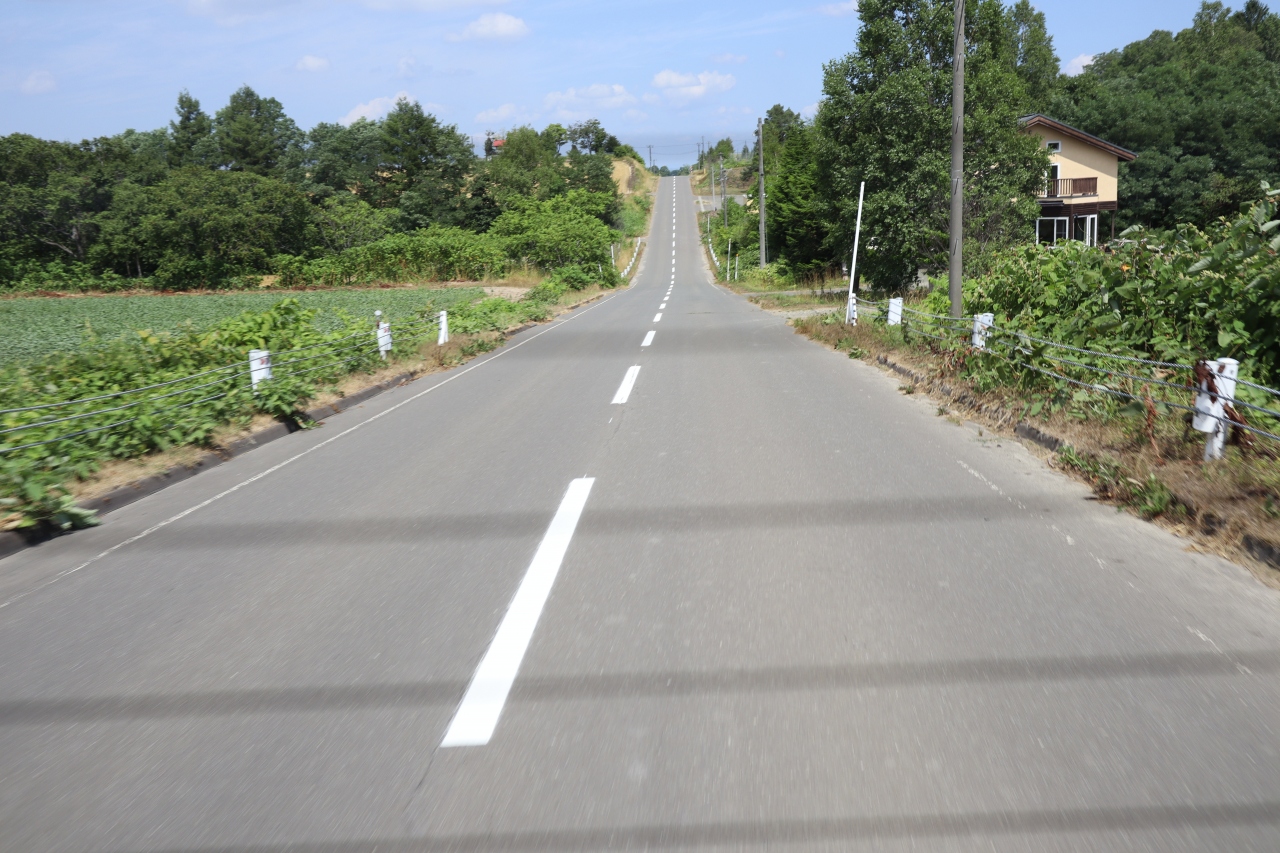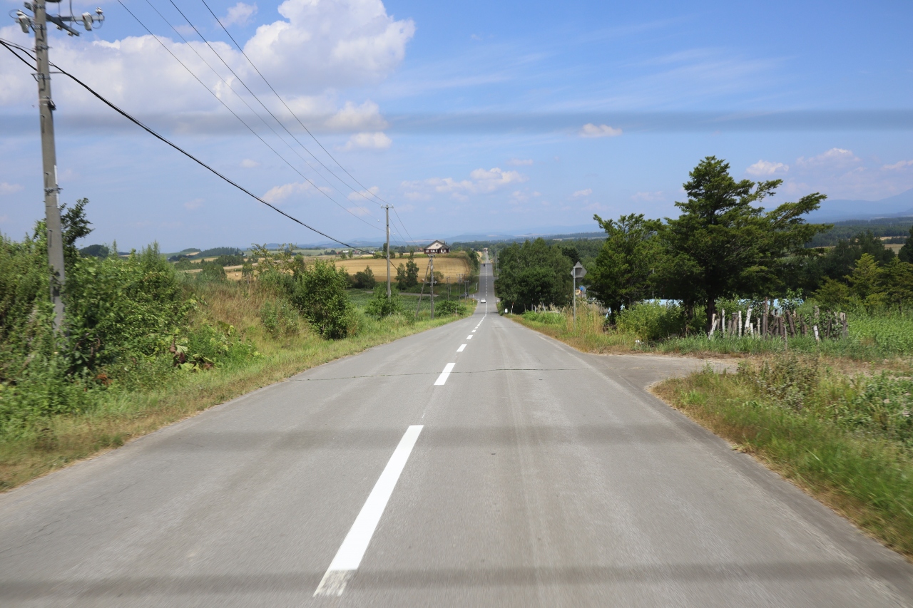 本来はバス移動中の車窓からではありますが、交通量が少ないときに一旦下車して写真を撮ることができました。何の変哲もないまっすぐでアップダウンが続く2kmほどの農道です。美瑛・富良野に来た際はみなさん必ずと言っていいほど立ち寄る観光スポットですね。- 旅行時期