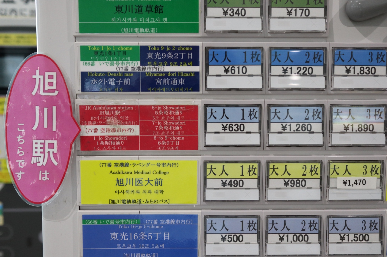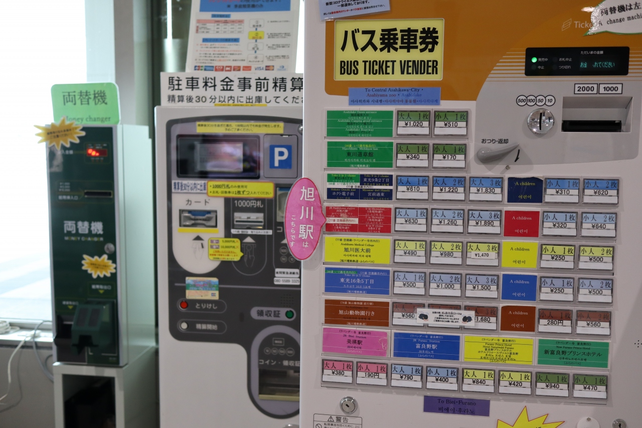 コンパクトな空港です。以前は羽田からの朝一便で到着すると美瑛・富良野方面の定期観光バスにピックアップしてもらってそのまま観光できましたが現在はそのコースがありません。また、旭山動物園行の路線バスもコロナ禍で休止されています。従って、最寄り起点となる旭川駅まで一旦行くことになります。旭川空港1番バスのりばから乗車630円です。