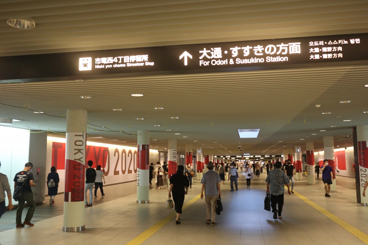 JR札幌駅からすすきの方面に向かって延びる地下道、通称「チカホ」。地下鉄南北線に沿って続く地下道には地上の何倍もの人が往来します。雨の日や冬の雪の時期などは特にですが、今年のように暑い夏にも涼しい地下道は重宝します。