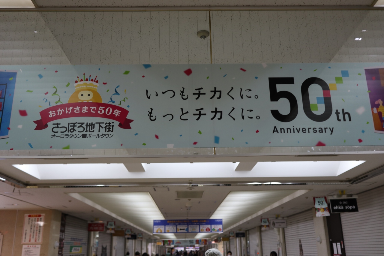 出口はブルーのナンバーで分かります。まず、札幌駅から南に歩いて地下鉄札幌駅を通り過ぎた右側に2番で出入口は日本生命ビルで付近に旧北海道赤レンガ庁舎が、もうしばらく歩いた左側の5番出入口は札幌時計台が近いです。テレビ塔のある北南の境で東西にも分岐します。さっぽろ地下街のオーロラタウン、ポールタウンは50周年を迎えました。