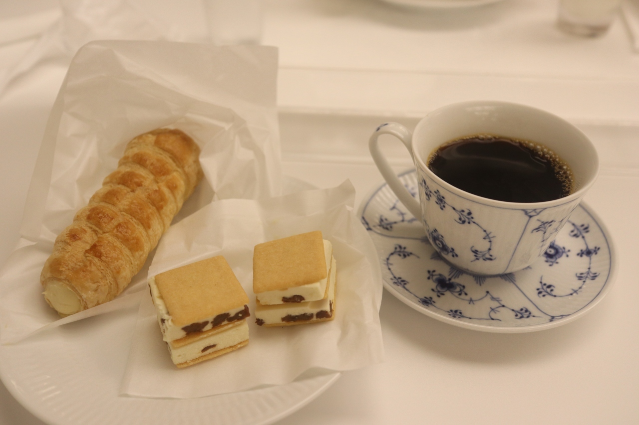 サクサクパイやマルセイアイスサンドを注文しました。ホットコーヒーは濃くて美味しかったです。喫煙ルームは確か8階でした。エレベーターを使いまして降りて左にすこし行ったところです。