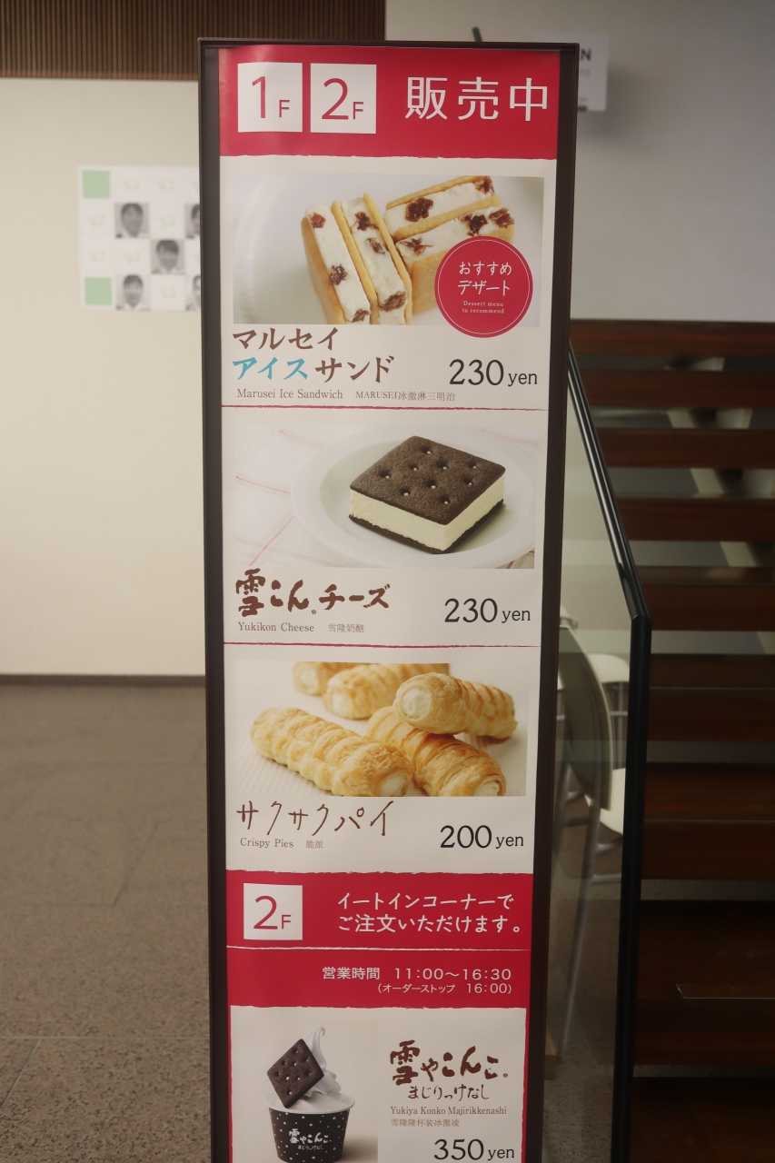 JR札幌駅から西へ大丸の方に徒歩で4分くらいです。三井ガーデンホテル札幌の道路挟んだ目の前に札幌本店はあります。ビルの上部壁面に「六花亭」と書かれた看板があります。一階にはお土産があり、二階は喫茶食事処になっています。