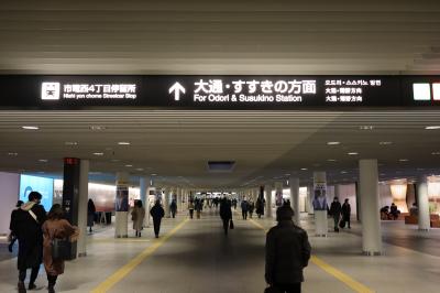 本通の三越百貨店も地下から直結しています。その先の狸小路方面には小店舗が左右にぎっちり詰まっています。すすきのまでの間、地下鉄2駅分ありますがついつい地下道を歩いてしまいます。- 旅行時期