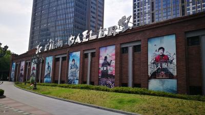 ジャッキーチェン博物館 の外見映画のポスターらしきものが並んでいるレン...