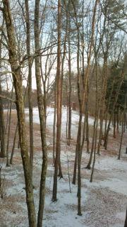 客室からの眺め。今回はタワー棟。角部屋で、真正面はこの雑木林。横はホ...