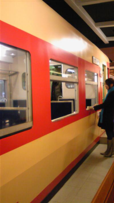 電車1車両がそのままレストランの中に置いてあり、もちろん車内の座席で食事をすることもできます。連休中など混雑時は写真を撮るのに順番を待たないとならない場合もありますが、今回は土日だけれどシーズンオフということもあり比較的空いてました。(誰もいなかった)なので座り放題、写真撮り放題。子供は大満足です。