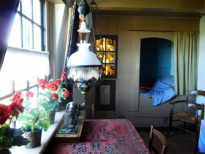 [楽しみ方]桟橋から数分で、ビジターセンター。売店、カフェ、トイレなどあり。ここで、風車内部見学を含む観光チケット(9EUR)を購入。なお、ほとんどの観光客はチケットを購入せず、(無料で)風車を楽しんでいる。各風車博物館でもチケットは買える。ここから堤防上の道を歩く。この日は、今年最後の風車の日(National windmill day)で、可能な限りの風車が実運転されるとのことだったが、実際に回転していたのは5基程度だった。最初の風車博物館(Museummolen Nederwaard;有料)では、昔の居間を再現。往時の「風車守り」の生活がしのばれ、非常に興味深い。