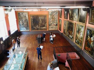 いる。展示室は壁一杯に作品が掛かっていて、圧倒される。写真撮影可だが、ガラスの反射が邪魔で、なかなか良い写真が撮れない。『ユピテルとセメレ』『アレキサンダー大王の勝利』は初めて見た。日本語の説明ボードあり。「出現」「一角獣と貴婦人」などが日本へ貸出中。デッサンは窓際の扉の中に格納されていて、1枚ずつパネルを開いて見る仕組み。手書きの格子線を入れたデッサンが多い。入館者が少なく、静かな雰囲気も良い。- 旅行時期