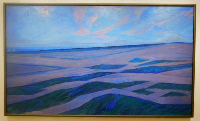 [展示品]近現代作品が大半で、世界最大級のモンドリアンのコレクションが有名。モンドリアン(Mondriaan 1872-1944)は、オランダ出身の画家。抽象画に移る前の作品(「砂丘」などの風景画)が多数あって面白い。デルフト焼きの部屋には、有田焼を含む大量のコレクション。2階に、ゴッホ「アルルの庭」(花咲く庭と小道)、モネ「ルーヴル河岸」、シニャック「カシス、ロンバール岬」、シーレ「エーディトの肖像」、ホドラー「習作 Study for day」、カンディンスキー「白いフォームを持つ絵画」などに注目。カフェでの休憩含み、所要時間は1時間半。