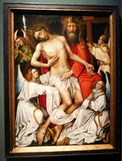 [展示品]好感・注目作品:ロヒール=ファンデア=ワイデン工房『三位一体』。ルーベンス『眠る幼子に礼拝する聖母マリア』。ヤン・サンダース・ファン・ヘメッセン(Jan van Hemessen)『最後の審判』。ピーテル・ブリューゲル(子)『ネーデルラントの諺』。ブリューゲル(父)の同名作品は、ベルリン国立絵画館所蔵。100以上ものネーデルラントのことわざが絵画として描かれている。タブレット画面をタップして、各ことわざの詳細解説が見られる。ただ、ゆっくり見る時間がなかった。他に、ヴァージナルなどの古楽器。所要時間は1時間。