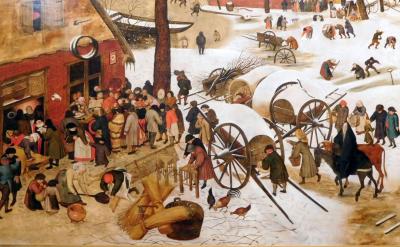 ピーテル・ブリューゲル(子)「ベツレヘムの人口調査」。ブリューゲル(父)の作品は、ブリュッセルのベルギー王立美術館蔵。所要時間:約40分。- 旅行時期