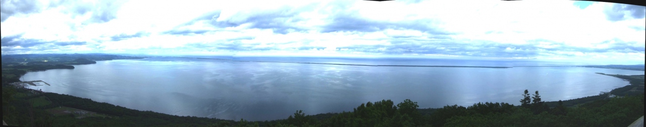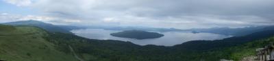 幸い朝方の霧が晴れ、期待通りに、素晴らしい風景を楽しめました。「道の駅ぐるっとパノラマ美幌峠」から少し丘に上ると、眼下に屈斜路湖が広がっているほか、ほぼ360°の景観です。