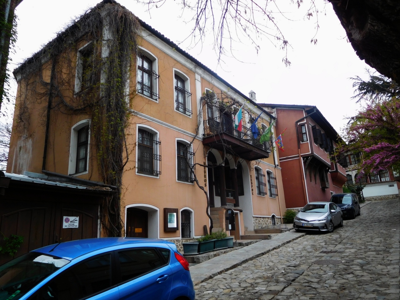 ヴェリコ・タルノヴォの旧市街、ヤントラ川沿いの細い道(グルコ通り)にあり、車でのアクセスは少し面倒。ホテルには狭いが駐車場がある。