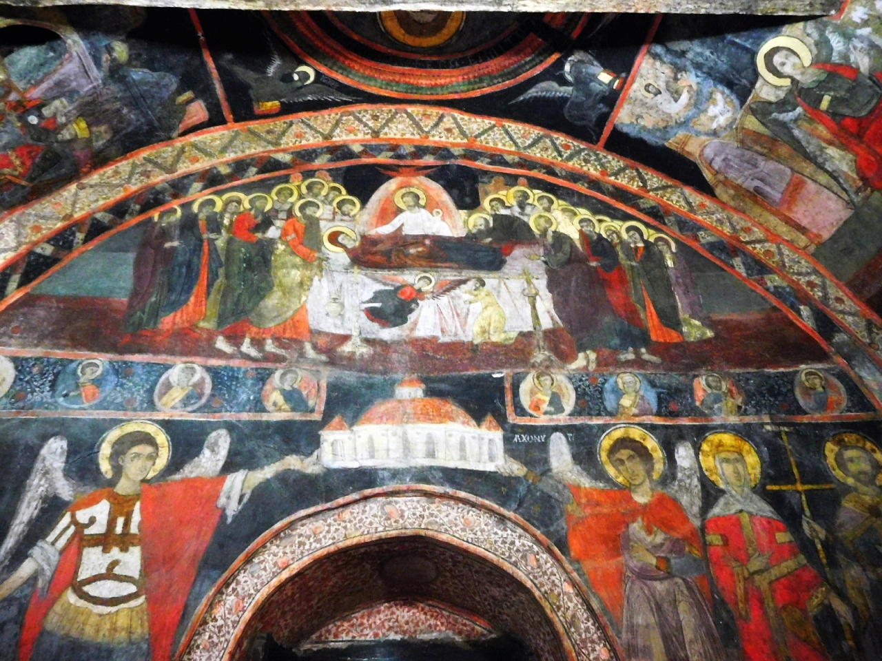 内部は16世紀から17世紀に描かれたという色鮮やかなフレスコ画