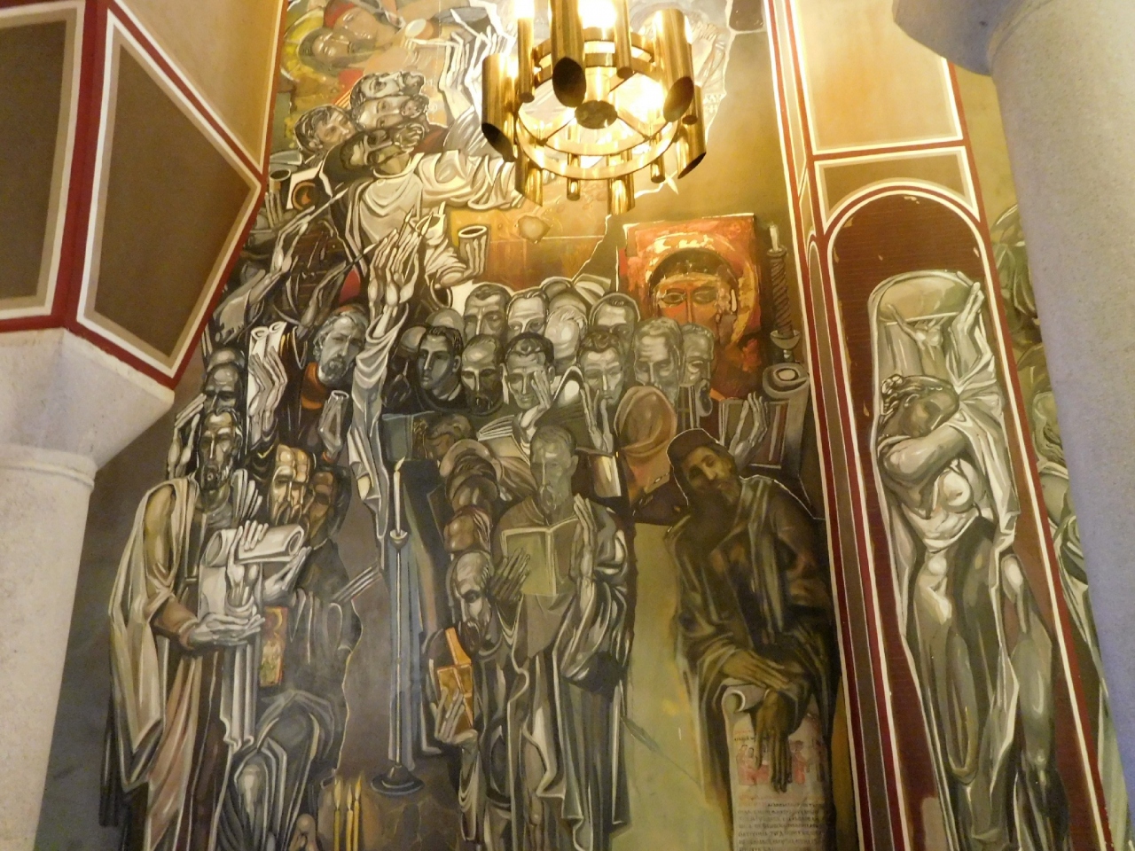 頂上にある大主教区教会(キリスト昇天教会)の内部は、修復された社会主義時代に描かれた現代アート。画家Teofan Sokerovにより、1985年に描かれたもの。