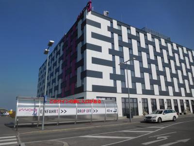 空港第3ターミナルから鉄道駅や駐車場P4に通じる地下道経由でほぼ直結、徒歩10分以内。地下道には案内標識があるが、地上に出たところにある右折標識は車両のためのもの。歩行者は直進。